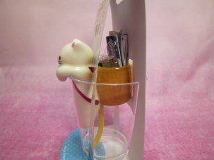 しっぽん ねこさんがしょっている陶器製のカゴの中で植物を育てる「しっぽん」。 カップの水をねこさんの尻尾がくみ上げる仕組みになっています。 ねこさんの他に、お猿さん、ワンちゃんなどがありました。 ちなみにこちらはワイルドストロベリーが育ちます。