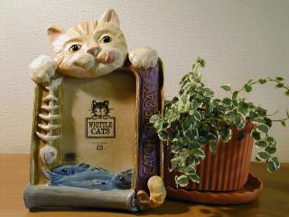 フォトフレーム なんとも存在感のあるフォトフレームです。右手に持った魚の骨と下の魚が印象的。 フレーム自体が缶詰に見立てられています。 魚の缶詰といえば、私は、いわしかさんまってかんじなんですけど、これはいったい? my妹からの誕生日プレゼントです。