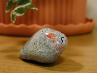 石にゃんこ お友達からお土産に頂いた石で出来たにゃんこです。 本当は冷たい石なのに、ネコさんのニマ〜って言うお顔が描かれただけで、 こんなにも暖かい感じになってしまうんですね。ネコさんの威力はスゴイ!
