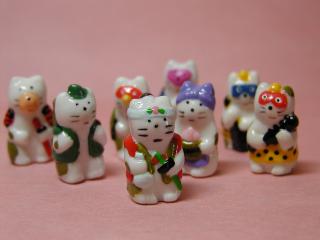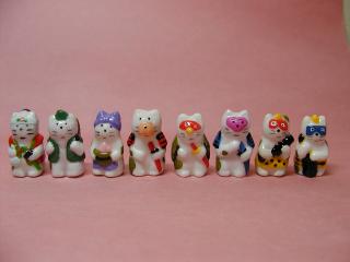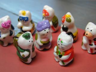 桃太郎猫さん 皆様ご存じ「しみじみ緑茶」のおまけの桃太郎猫さんです。 七福猫さんもそうだけど、ほんと良く出来てますよねぇ。感心しきり。 しかし「桃太郎猫」はまだしも、「犬の猫」とか「キジの猫」って(笑) サントリ〜さんには頭が下がります。ん〜商売上手っ(*^m^*)