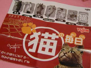 ネコさんの食玩 コンビニ、セブンイレブン限定で発売された食玩「猫の毎日」。 全6種類シークレット1種類の個性的な猫さんたちです。 「近くの誰かに似ている・・・」がコンセプト。 威張っていたり、頑固親父風だったり。。。 むふふ(=^m^=)いるいる。