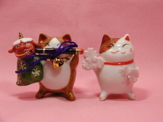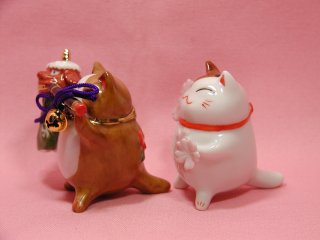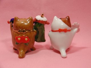 月飾りねこさん お馴染み「猫舎」の月飾りのねこさんたち。 12月の獅子舞と、3月の花(?)かな?毎年、年末に発売される猫舎の福箱に入ってました(=^m^=) 12ヶ月分揃えたら、なかなか迫力ありそうですね〜。