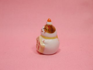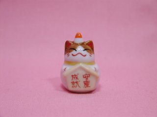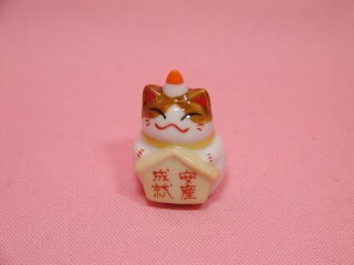 安産成就ねこさん 安産成就のお札(?)を持ったねこさん。 頭の突起は帽子? 身長2cmほどの小さな小さなねこさんです。