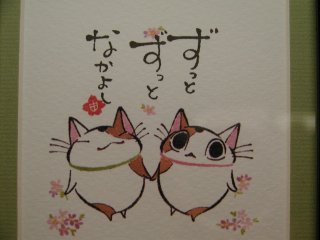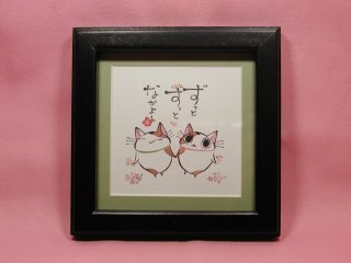 猫舎額 猫舎さんの額です。 ほのぼのとしたねこさんたちと「ずっとずっとなかよし」のお言葉。 卒業、新入学、新しい職場へ就職、転職など春らしいメッセージ額です。