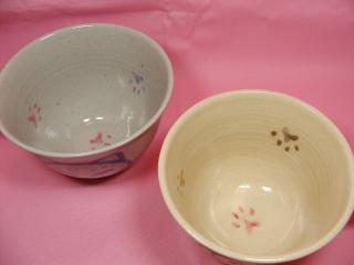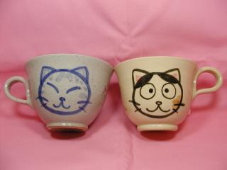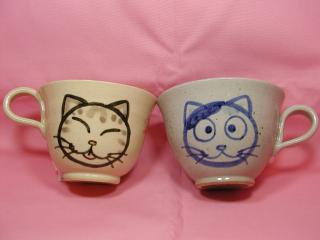 「黒田久美子さん」のネコさん 2002年8月、浅草の松屋で開催された「猫の器展」から 連れ帰ったネコさんです。 まん丸顔のおとぼけネコさんは、まさにねこ丼好み(=^m^=) スープカップとしても使える大きめのカップなので重宝してます。
