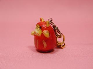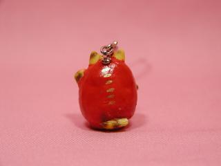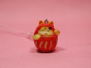 「はりまるさん」のネコさん 2002年伊勢で開催された「招き猫まつり」から連れ帰ったネコさんです。 今回の招き猫まつりのテ〜マが「七招き八起き」。 ダルマさんをかぶったネコさんです。後ろのチャック(?)がお茶目(=^m^=)