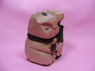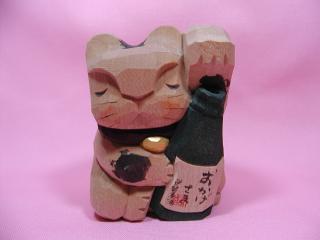 「亥屋さん(?)」のネコさん 2002年、伊勢で開催された「招き猫まつり」から連れ帰ったネコさんです。 ぷっくりの赤ら顔、おかげ様の酒瓶を抱えた姿が気に入って連れ帰りました。 2001年の招き猫まつりに参加された作家さんのネコさんと言うことだったのですが、 売り手のお兄さんも詳しいことは分からずじまい(T。T) 唯一、ネコさんの乗っていた台に書いてあったのが「亥屋」。 しかし、これも定かではありません(^^ゞどなたか分かる方いらっしゃいますかぁ?