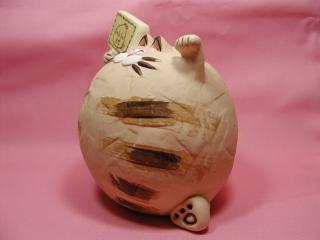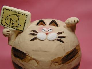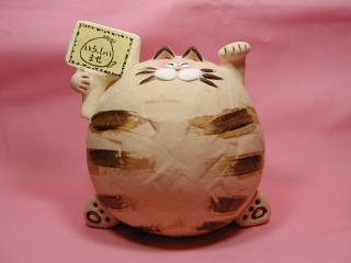 「愛子さん」のネコさん 2002年、常滑で開催された「招き猫まつり」から連れ帰ったネコさん。 愛子さんデザインの「笑う招き猫シリ〜ズ」の招き猫さんです。 まん丸の身体、にこやかなお顔付き。まさしく福猫(o^^o)