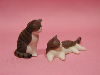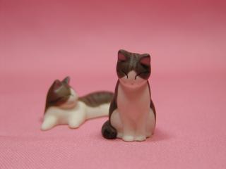 「ねこどんさん」のネコさん 2002年10月、プランタン銀座で開催された「猫展」から連れ帰ったネコさんです。 出遅れた私が悪いのか。。。大好きのミッケちゃんとは会えずじまい(T。T) 何とか待っていてくれた2つをゲット。う〜ん、やっぱりかわいい(o^^o)