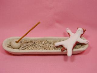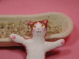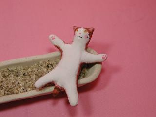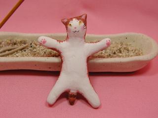「松風直美さん」のネコさん 2002年10月、東京谷中の猫町で開催された「猫の明かりと香り展」 から連れ帰ったネコさんです。 仰向けで寝てるネコさんがメチャメチャかわいい(=^m^=) しかも、良〜い香り。癒されますわぁ〜。