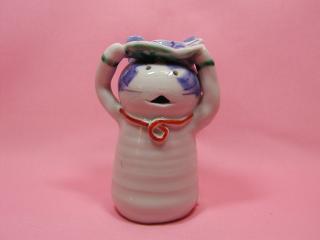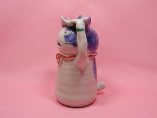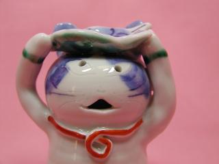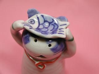「東早苗さん」のネコさん 2002年10月、東京谷中の猫町で開催された「猫の明かりと香り展」 から連れ帰ったネコさんです。 おとぼけ顔と頭の魚が気に入って連れ帰りました。 このお姿とお香の良い香りで肩の力がス〜っと抜けるようです(o^^o)