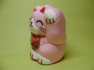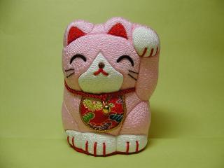 「松田雅子」さんの招き猫さん 木目込み人形作家「松田雅子さん」のちりめんの招き猫さんです。 すべて丁寧な手作りの1点物。癒し系招き猫さんかな。 とってもホンワカ暖かい感じが、ネコさんから漂ってくるようです。