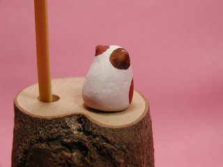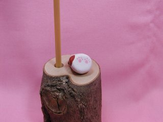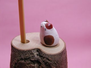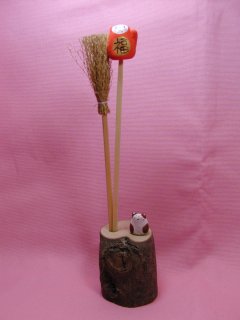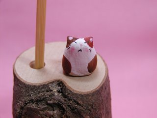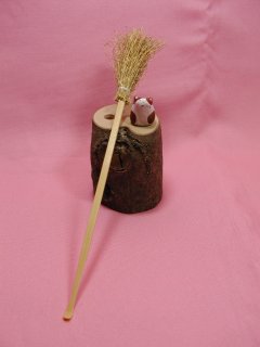 「松風直美さん」のネコさん 「耳かきネット展覧会」からお招きした松風さんの耳かきネコさんです。 耳掃除。。。ってことで、ホウキの耳かき付き(=^m^=) さすが、ねこてさんっ! 切り株の耳かき立てもサイコ〜。