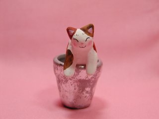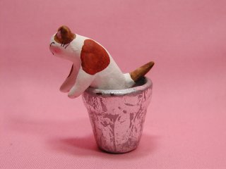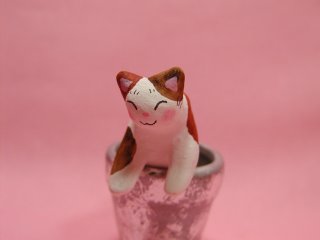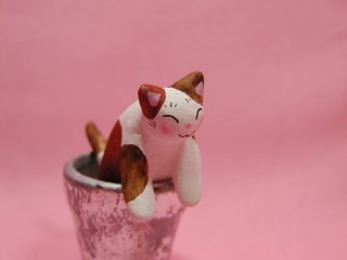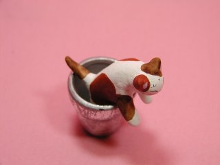 「松風直美さん」のネコさん 2002年12月に東京谷中「猫町」さんで開催された 「猫の小さな贈りもの展」から連れ帰ったネコさんです。 小さいバケツに入ったネコさん。 ねぇ、ねぇ。。って呼ばれているようで、こちらまで「なに?なに?」って 話しかけたくなってしまうくらい。。。(o^^o)