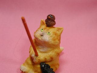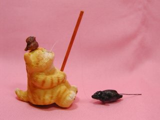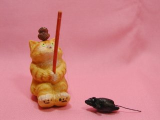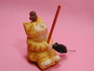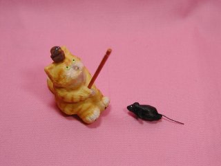 「はりまるさん」のネコさん 2002年12月に東京谷中「猫町」さんで開催された 「猫の小さな贈りもの展」から連れ帰ったネコさんです。 んんっ!?ねずみ釣り?(=^m^=)