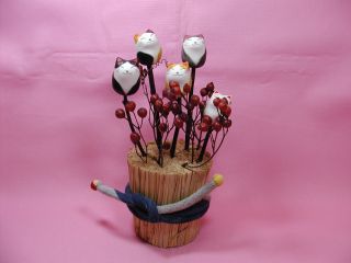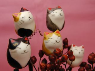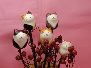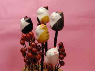 「松本浩子さん」のネコさん 2002年12月、立川グランデュオで開催された 『開運招福・福ねこ屋』から 連れ帰った「ぴ〜さん」こと、松本浩子さんのネコさんです。 お馴染みだるま猫さんが串人形になっています。 2003年は、綺麗な野バラの実と一緒(o^^o)