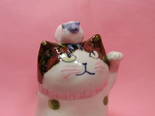 「東早苗さん」のネコさん 2002年12月、立川グランデュオで開催された 『開運招福・福ねこ屋』から 連れ帰った、東早苗さんのネコさんです。 2003年の干支ひつじさんが頭の上に(=^m^=)