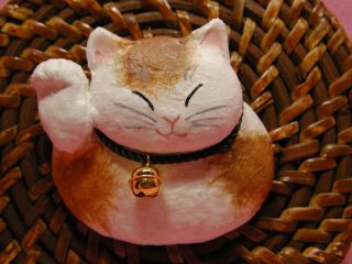 「並木恵子さん」のネコさん 2003年1月、プランタン銀座「和み猫展」から連れ帰ったネコさんです。 なんだか、お供え餅みたいなお姿のネコさん。 やっぱりプクプクしたネコさんって良いにゃん。