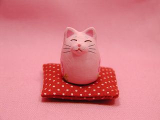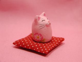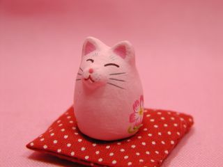 「渋谷ちづるさん」のネコさん 2003年1月、ギャラリー猫町さんで開催された渋谷ちづるさんの個展 「ねこじむWORLD」から連れ帰ったネコさんです。 見事な絵付けのピンクのネコさん。表情が優しい(o^^o)