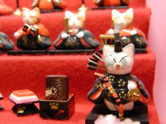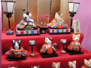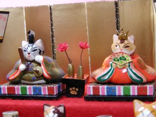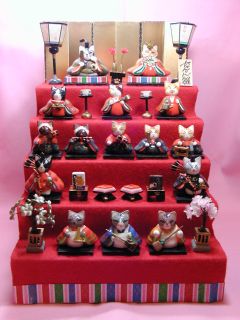 「ねこどんさん」のネコさん ぢゃぢゃ〜ん\(^o^)/ねこ作家ねこどんさんの段飾りのお雛様です。 ネコさんも小物もめっちゃかわいい&華やか〜。お見事っ! 写真がイマイチでごめんなさい〜(T。T)