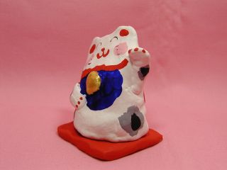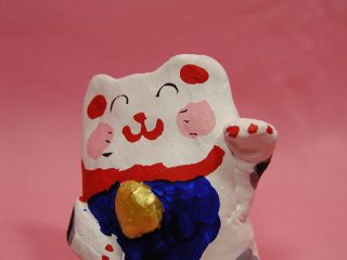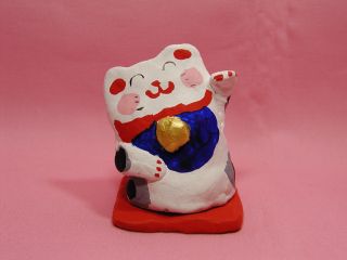 「布施渥さん」のネコさん 2003年2月、浅草松屋で開催された招き猫絵師布施渥さんの 個展から連れ帰ったネコさんです。 手びねりの暖かい風合いと優しいお顔が魅力的。 沢山のネコさんが描かれたてぬぐいもかわいいです。