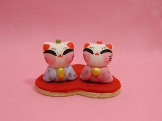 「なつめみちこさん」のネコさん 2003年2月、ギャラリ〜猫町で開催された「ねこの小さなおひなさま展」 から連れ帰ったネコさんです。 春にピッタリッ!明るいネコさんのお雛様。
