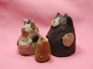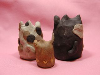 「青木あかねさん」のネコさん 2003年3月に開催されたア〜トフリマ「中野ア〜トムチョ」から 連れ帰った招き猫さんです。 ネコさんの優しいお顔付きは、作家さんのお人柄がよ〜く出てます(o^^o) 手のぬくもりが伝わってくるほのぼの暖か〜いネコさんです。