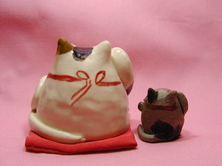 「荒川洋子さん」のネコさん 2003年3月に開催されたア〜トフリマ「中野ア〜トムチョ」から 連れ帰った招き猫さんです。 山梨県にある「遊春窯」の陶芸作家さんの招き猫さんです。