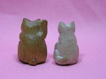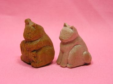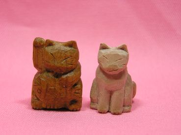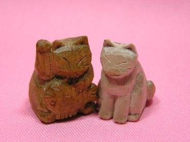 「千早さん」のネコさん 2003年9月に瀬戸で開催された「招き猫まつり」から 連れ帰ったネコさんです。 大きなお魚(鯛かな?)を抱えた招き猫さんと、 「にやっ」ってお顔のネコさん(=^m^=)