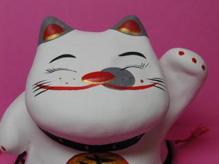「深井和子さん」のネコさん 2001年伊勢おかげ横町で開催された「招き猫まつり」で出会ったネコさんです。 一目見た時に「にゃはは〜」って、ついついつられて笑っちゃいました(o^^o) なんか「やぁ〜」って声掛けられてるみたいな感じ。 みんな、寄っといで〜!このネコさんみたいにいつも笑顔でいたいですね。