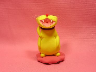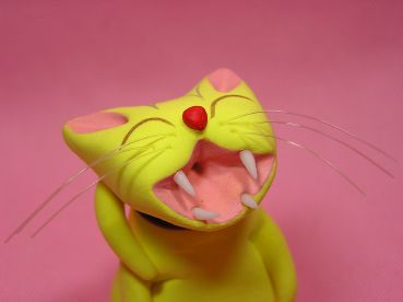 「前川道子さん」のネコさん 2003年11月に新宿パークタワーで開催された「アートフリマ」から連れ帰ったネコさんです。 毎回カラフルなネコさんで目を楽しませてくれる花ねこさんのネコさんは、 ほんと存在感があります。「がはは〜」って表情が最高っ!(≧∇≦)