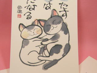 「濱猫さん」のネコさん 2003年12月に東京高円寺「猫の額」で開催された 濱猫さんこと坂本愛理さんの個展から連れ帰ったネコさんです。 ぷっくりふくよかな猫さんと心に染みる言葉。。。 見てると元気になれる。。。そんな感じです(o^^o)