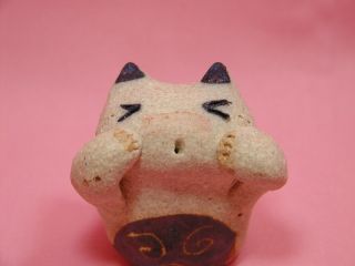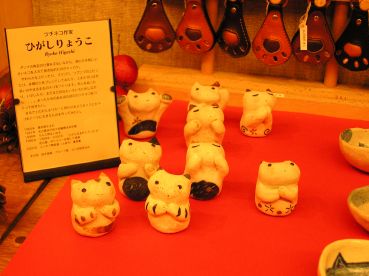 「ひがしりょうこさん」のネコさん 2003年12月に東京谷中「猫町」で開催された 「猫のちいさなおくりものかざりもの展」から連れ帰ったネコさんです。 「うにゃ〜っ!」って感じのポーズに一目惚れ(=^m^=)