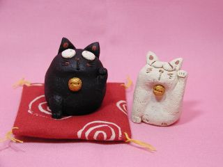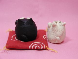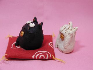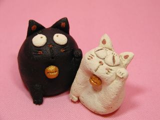 「伊藤諭吏子さん」のネコさん 2003年12月に東京谷中「猫町」で開催された「猫のちいさなおくりものかざりもの展」と、 新宿パークタワーで開催された「アートフリーマーケット」から連れ帰ったネコさんです。 まん丸お目目と、申し訳なさげに上げた小さな手がかわいいです。