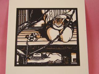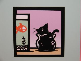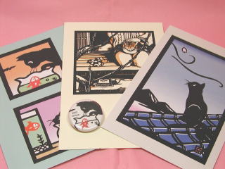 「高木 亮さん」のネコさん 2003年12月、桜木町で開催された「第1回アートキャラバン」から 連れ帰ったネコさんのハガキと缶バッチです。 切り絵、イラスト、キャラクターなどを作られている作家さんです。 ネコさん専門ではありませんが、とっても雰囲気のあるネコさんに目がとまりました。