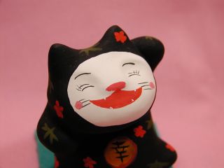 「深井和子さん」のネコさん 2003年12月、池袋三越で開催された「新春心に届く言葉と招き猫展」から 連れ帰った招き猫さんです。「心に届く言葉を」をテーマとした猫作品展。 深井さんの猫くんを見ていると「元気に行こうっ!」って励まされます。