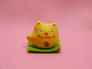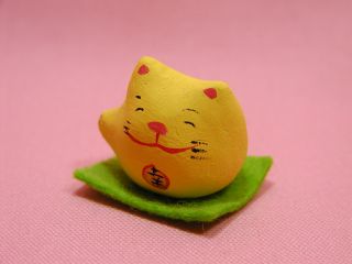 「深井和子さん」のネコさん 2003年12月、東京立川グランデュオで開催された「新春開運招福福ねこ屋」から 連れ帰った招き猫さんです。お守りのように小さい巾着に入ったネコさん。 この猫くんで2004年も良いことがあるかな?