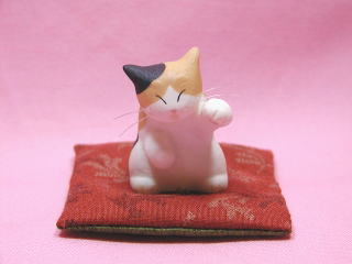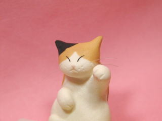 「ねこどんさん」のネコさん 2004年1月、プランタン銀座で開催された「なごみ猫展」から連れ帰ったネコさんです。 ねこパ〜ンチッポーズの元気招きちゃん。
