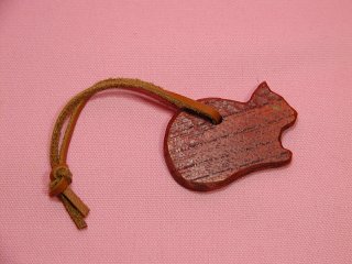 「春日工房さん」のネコさん 2004年5月に滋賀県彦根で開催された「ヘムスロイド村祭り」から 連れ帰ったネコさんです。 横向き猫さんのシルエットがおしゃれな感じで、 木と革の組み合わせが大人っぽい。