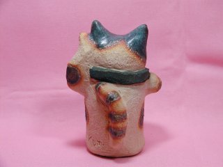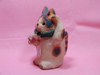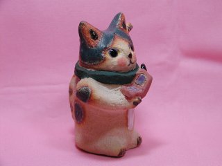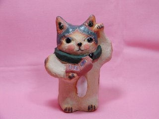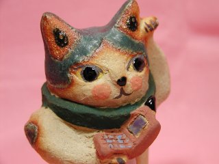「komkom招き猫・小室幸雄さん」のネコさん 2004年5月に滋賀県彦根で開催された「ヘムスロイド村祭り」から 連れ帰ったネコさんです。 携帯電話で積極的に人を招いている招き猫さんだそうです(o^^o) 働き者のまじめ〜な(=^m^=)ネコさんが気に入りました。