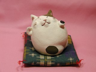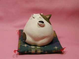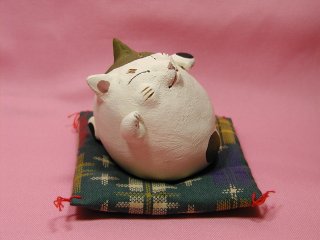 「伊藤諭吏子さん 」のネコさん 2004年9月に東京谷中「猫町」で開催された伊藤諭吏子さんの個展 「ゴロゴロころころ招き猫展」から連れ帰ったネコさんです。 コロッコロの愛らしいネコさん。 ちょっとセクシーさも感じるのは私だけ?(=^m^=)