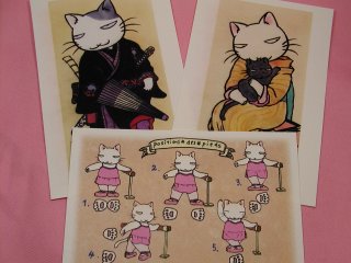 「ブタネコ本舗さん」のネコさん 2004年9月に東京谷中「ギャラリー猫たび分限」で開催されたブタネコ本舗さんの 切り絵作品展「猫とパ・ド・ドゥ」から連れ帰ったネコさんです。 なんとも(≧∇≦)ねこ丼好みのお顔付きっ! めっちゃツボです。うはは。