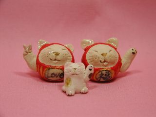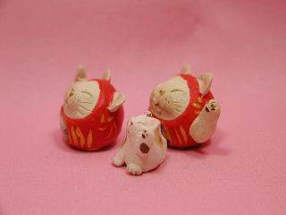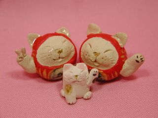 「服部京子さん」のネコさん 2004年10月に愛知県瀬戸市で開催された「第9回招き猫まつり」 楽市から連れ帰ったネコさんです。 おめでたいダルマネコさんと豆ねこさん。 ピースしてるダルマねこさんサイコ〜ッ(≧∇≦)