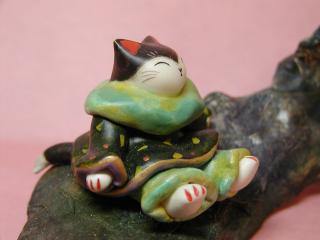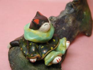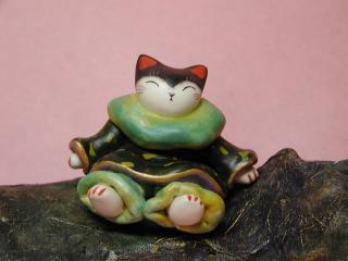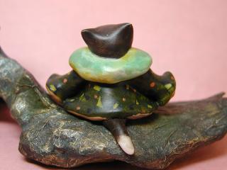「ぴ〜さん」のネコさん 2001年11月に開催された「猫町」さんでのぴ〜さんの個展から 連れ帰った、も一つのネコさんです。 大きな星で沢山のネコさん達が自由に遊んでいる星猫さんの周りにいた子。 なんとなく足をブラブラさせて「ふんふんふん」って歌を口ずさんでいるような姿は、 見ているこちらまで「ふんふんふふ〜ん」と歌いたくなってしまいます♪o(^^o ) ( o^^)o