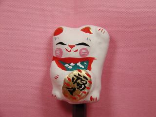 「戸村裕さん」のネコさん 2004年10月に愛知県瀬戸市で開催された「第9回招き猫まつり」 楽市から連れ帰ったネコさんです。 招き猫さんのえんぴつキャップ。鉛筆使うのが楽しくなりそう(o^^o)