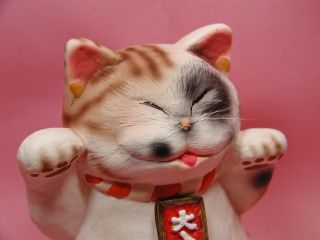 「播和比古さん」のネコさん 2004年10月に東京谷中「ギャラリー猫町」で開催された播さんの個展 「ねここね 20th」から連れ帰った招き猫さんです。 いつものはりまるさんのネコさんが焼き物ネコさんにっ!(o^^o)