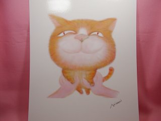 「江口真代さん」のネコさん この絵のタイトルは「へんな猫」(=^m^=) ほわぁ〜っとした優しいタッチと、このお顔に惹かれました。 おもわず、こちらまでニマァ〜ってなっちゃいます(≧∇≦)