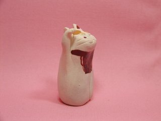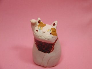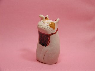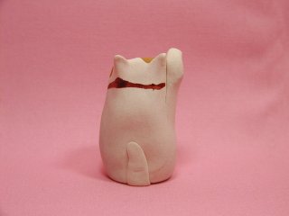 「半澤淳子さん 」のネコさん 2004年11月に東京銀座プランタンで開催された 「ねこ展」から連れ帰ったネコさんです。 手を高々と挙げた細身の招き猫さん。