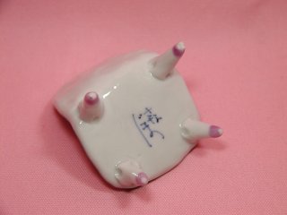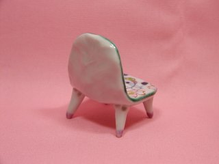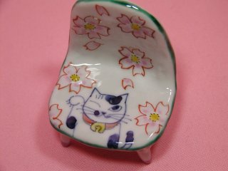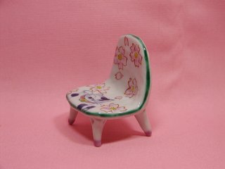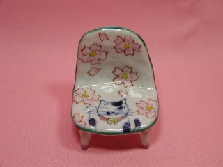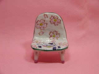 「東早苗さん 」のネコさん 2004年11月に東京谷中ギャラリー猫町で開催された 東早苗作陶展「ねことさなぼとうつわ」から連れ帰ったネコさんです。 ピンクの桜(かな?)と招き猫さんの絵付けがされた陶器の椅子です。 ウィンクした招き猫さんがめっちゃかわいい(o^^o)