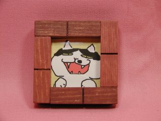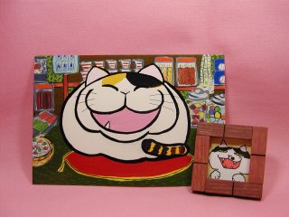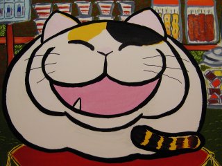 「高橋江里さん 」のネコさん 2004年11月に東京ビックサイトで開催された 「デザインフェスタ」から連れ帰ったネコさんです。 ねこ丼好みのふっくらした横広のお顔に一目惚れしました。 ちょっと悪顔(=^m^=)のネコさんもねこ丼好み。こちらはマグネットになっています。 イラストレーター高橋江里さんはウェブサイト「福豆画舗」を運営されています。